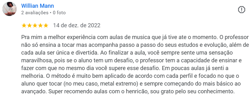 Willian teve um acompanhamento individual e conseguiu tirar o melhor proveito, como realizar seu sonho de tocar metal extremo.
